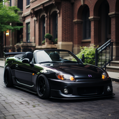 Mazda RX7 , customized, wide chrome wheels, flared wheel arches, japanese street --ar 11:8