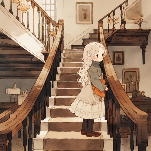 cute anime girl playing old wooden piano, old cosy room, --niji 5 --style cute