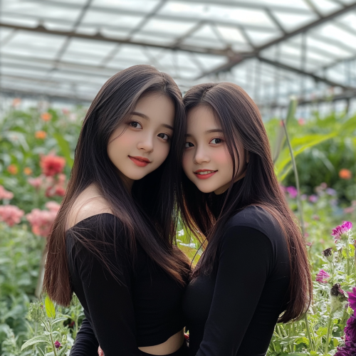 Hyper realistic portrait of two girls smilng waiting in line outside of a night club they are illuminated by soft lighting. Cinematic lighting editorial shot in the background you can see a line of people and a nightclub lighting. In the style of Annie Leibovitz. High resolution, 20k, hyper realistic, cinematic lighting, dramatic, close-up, editorial-style photograph with a cinematic feel