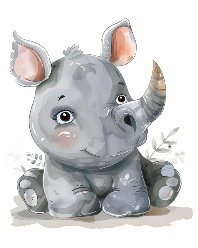 cute baby cartoon rhino for a poster on a baby's bedroom wall. white background. adorable. --v 6.0 --ar 4:5