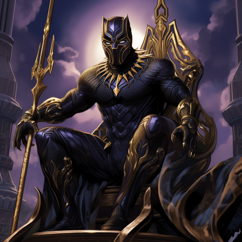 black panther as king of wakanda. Marvel United. Card Art. Marvel Comics Style.