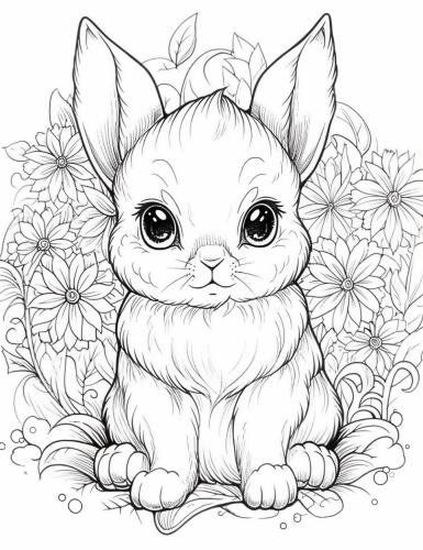 adult coloring pages, an adorable little baby bunny, in the style of chibi, with very large shiny eyes, cute and charming characters, in the style of Naomi Lord, Hannah Shay, chibi-core, cottagepunk, highly realistic, babycore, simple background, i can't believe how beautiful this is, soft and airy compositions, delicate use of line --niji 5 --ar 100:129