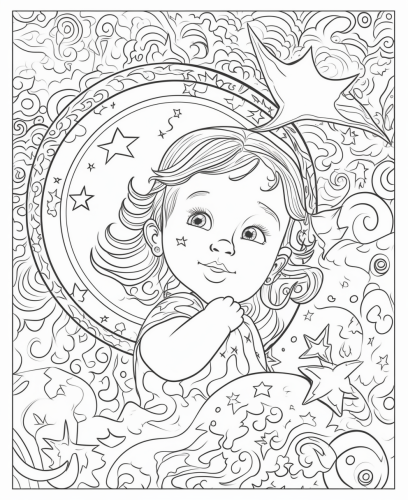 coloring book for kids, cover page, cute little baby girl dreaming about future, full color, colourful illustration, cartoon style, high detail, --ar 9:11 --v 5.0
