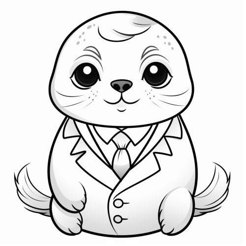 coloring page, a cute seal with an elegant suit with big and adorable eyes--v6.0