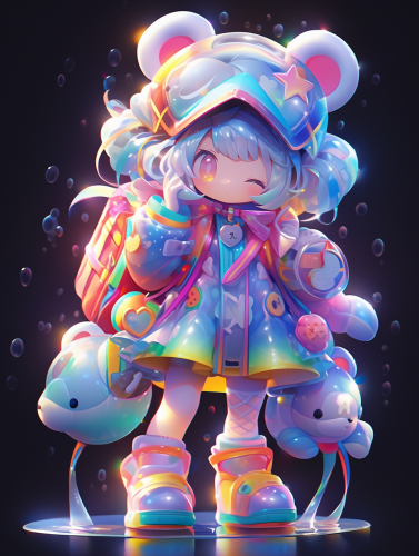 cute mouse, playful pose, kawaii, full body, random neon, holographic, prism, reflective clothes, clean background, blind box style, popmart, pvc, fine gloss, 3d rendering, hd, high quality, --ar 3:4 --niji 5 --s 250