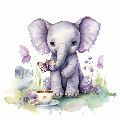 Cute baby elephant wearing a beige bow and holding dust beige and beige balloons, white background, watercolor, babyshower clipart, 8k, light beige white colors
