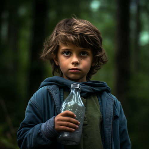 film still, 10 year old boy holding an egg on a spoon, wide shot, walking in the middle of nowhere, green australian landscape, idyllic, sunny, filmic --ar 16:9