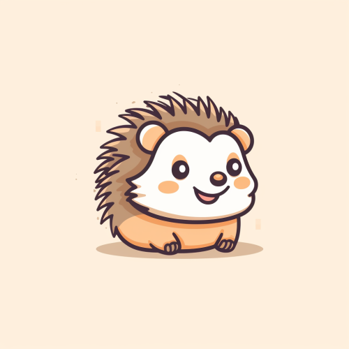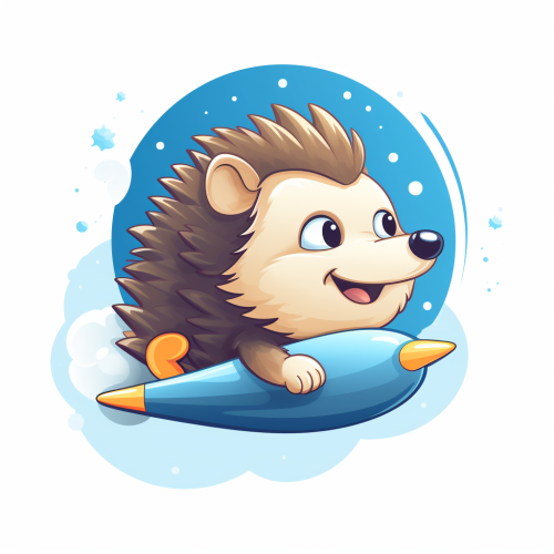 simple flat vector logo, cartoon illustration, cute happy hedgehog side by a rocket