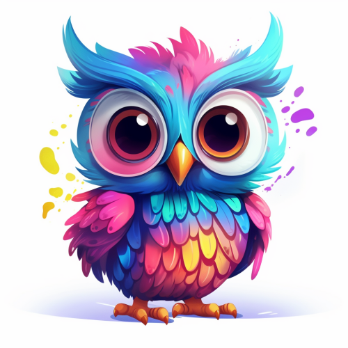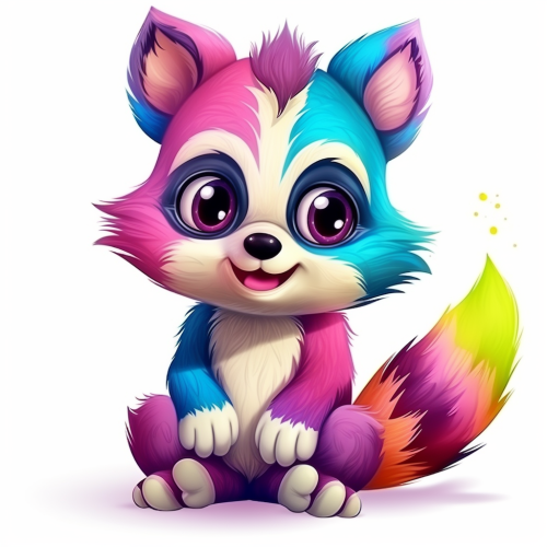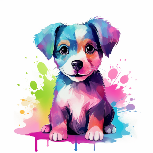 8k. high quality . Illustrated cartoon. colorful. Pink. Blue green.yellow.Digital illustration . Cute , Happy, puppy on solid white background