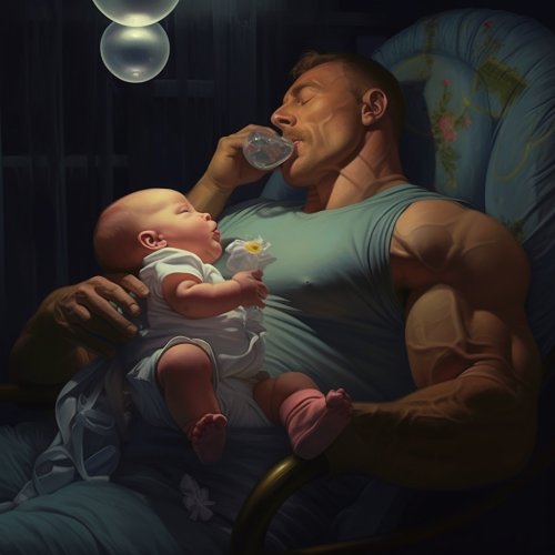 a bodybuilder taking a nap with a baby pacifier in his mouth.