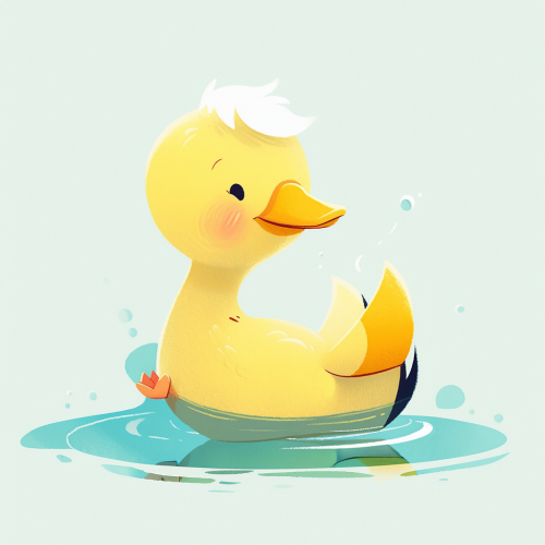 8k ultra hd. CMYK color profile. Print color profile, simplistic Sanrio cartoon drawing inspired, expressive, storybook drawing, artstation drawing, playful and expressive, cute happy expressions, irresistibly cute and playful adorable ducky playing in water, dynamic pose, expressive, simplistic drawing, comic, full body ducky playing in water with adorable, chibi, happy, round features, cute, dynamic poses, white background --niji 5 --style expressive