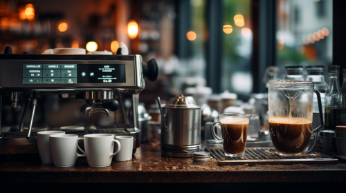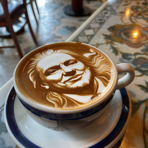 coffee culture, Color Grading, Editorial Photography, Depth of Field, Ultra Wide Angle, Shutter Speed 1/1000, F/25, Gamma, White Balance, Soft Light, Light Mode, High Contrast, 5D, 800K, Particles, Super-Resolution, Megapixel, ProPhoto RGB, RAW, VR, Spotlight, Frontlight, Halfrear Lighting, Backlight, Rim Lights, Rim Lighting, Artificial Lighting, Natural Lighting, Incandescent, Optical Fiber, Moody Lighting, Studio Lighting, Soft Lighting, Hard Lighting, Volumetric Light, Rembrandt Lighting, Split Lighting, Accent Lighting, Global Illumination, Lumen Global Illumination, Screen Space Global Illumination, Ray Tracing Global Illumination, Ambient Occlusion, Scattering, Glowing, Shadows, Ray Tracing Reflections, Lumen Reflections, Screen Space Reflections, Diffraction Grading, Chromatic Aberration, GB Displacement, Ray Traced, Ray Tracing, Ambient Occlusion, Anti-Aliasing, TXFXAA, AA, RTX, SSAO, Shaders, OpenGL-Shaders, GLSL-Shaders, Post Processing, Post-Production, Cel Shading, Tone Mapping, CGI, VFX, SFX, Insanely Detailed and Intricate, Hypermaximalist, Hyper Realistic, Elegant, 32K, HD, Photo --ar 16:9 --s 250 --v 5.2