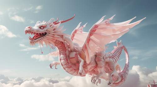 a dragon flying while a chinese character is portrayed, in the style of youthful protagonists, elaborate spacecrafts, website, light red and white, fujifilm provia, hurufiyya, ad posters --ar 16:9