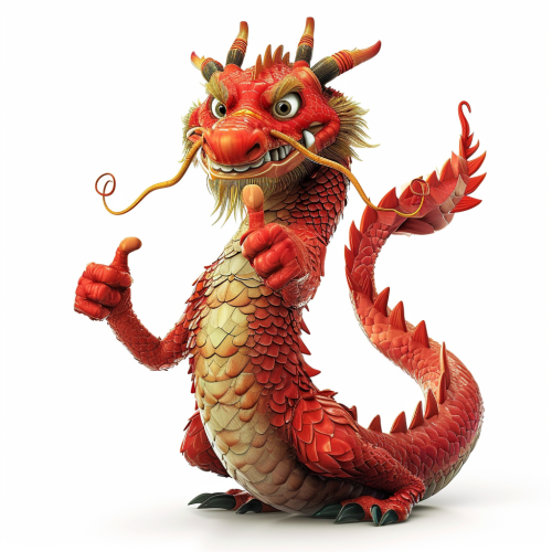 full body shot of a cartoon chinese 3d slim red dragon doing a thumbs up --v 6.0