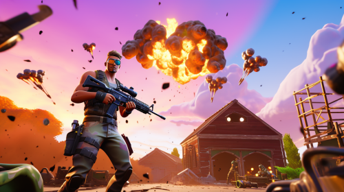 game cover, red vs blue, fortnite, fortnite character, hero --ar 16:9 --v 5.2 --s 250
