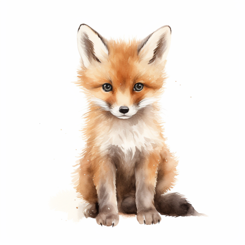 minimal watercolor of a baby fox, high detail, white background, 4k