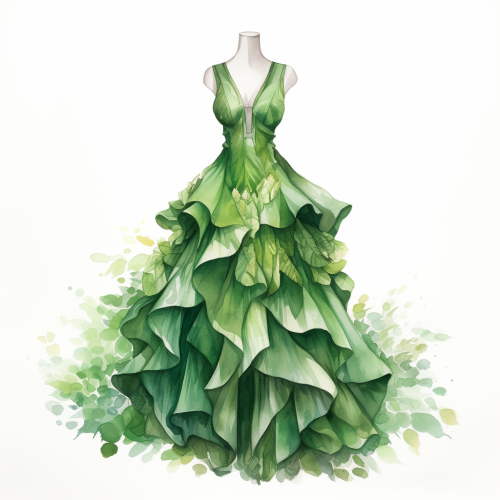 Iris Van Herpen watercolor fashion illustration green woodland forest dress