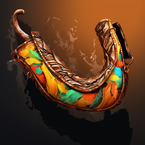 A single, colorful piece of fruit resembling a pipe bag, little musical notes cover from its skin. cartoon style, earthy tones, --no face, no house, no fruit, no guitar --seed 844384871