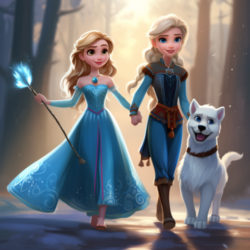 Anna and elsa from frozen and chase the dog from power patrol walking together
