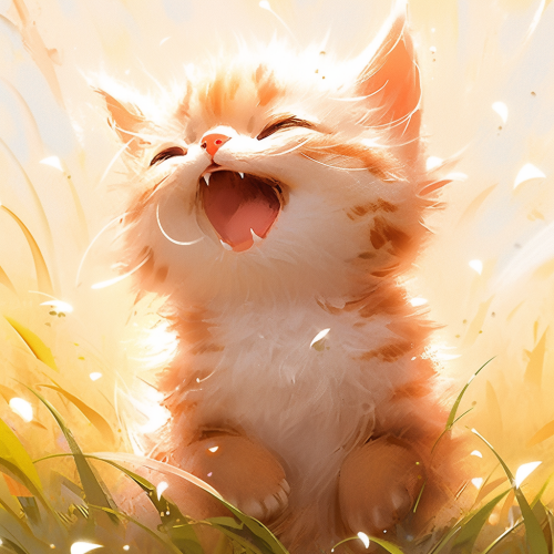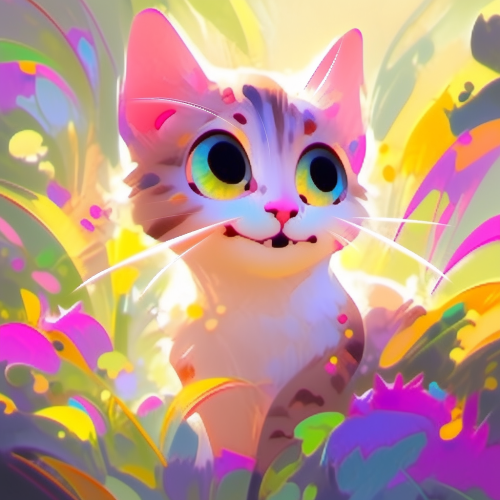 8k ultra hd Lisa frank inspired, expressive, happy, playful, studio level illustration, cover art illustration, artstation, professional illustration, cute cartoon illustration of an irresistibly cute adorable kitten with adorable, chibi, round features, cute, whimsy, background. Sunshine in background. CMYK color profile. --ar 1:1 --niji 5 --style expressive