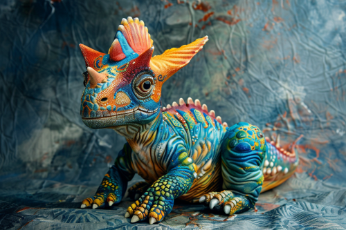 a cute huge colorful baby dinosaur sitting in the studio, detailed, photography realistic --ar 3:2 --v 6.0