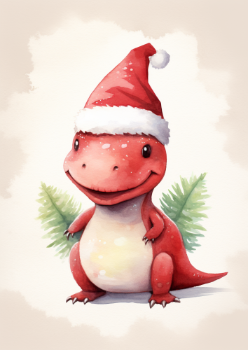 watercolour minimalist sketchy loose cute dinosaur wearing santa hat --ar 100:141