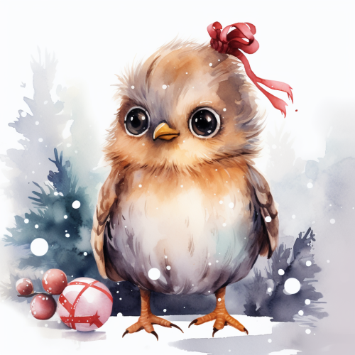 Kawaii Christmas cute bird on a white background in a watercolor style, gift --stylize 250 --v 5.2
