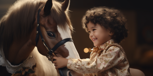 a little girl, about 10 years old, riding on a ski lift chair, wearing a cute and girly ski suit, with a furry hood, wearing skis and holding her poles. Her big husky is riding with her, he is wearing googles, a ski suit and ski boots. The little girl is wearing her goggles on her head, allowing for her beautiful big brown eyes to show, she is light skinned with rosy cheeks and freckles. The background shows other chairs on the lift behind them and a wintery, snowy, ski hill background. All in a kawaii - whimsical style.