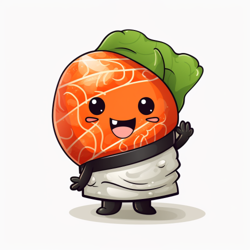 make an HOSOMAKI sushi, but he has face, doodle style, pixar style, cute, with arm and legs, he is a character, white background