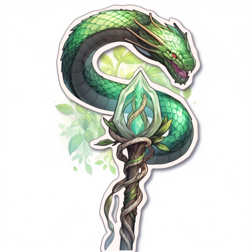 A green ancient magic wand, sticker, white background, by C. M. Kosemen, Christian Cline and Wayne Barlow --niji 5 --s 150 --no clutter, people, animals, random chunks, star, stars