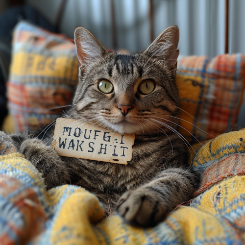 Mug shot picture of a cat, he is holding the classic mug shot card --s 750