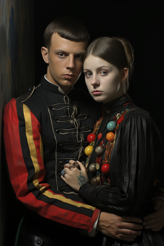two lover seperated by wall. dark cinematic art. by peter blake --ar 2:3 --s 750 --v 5.2