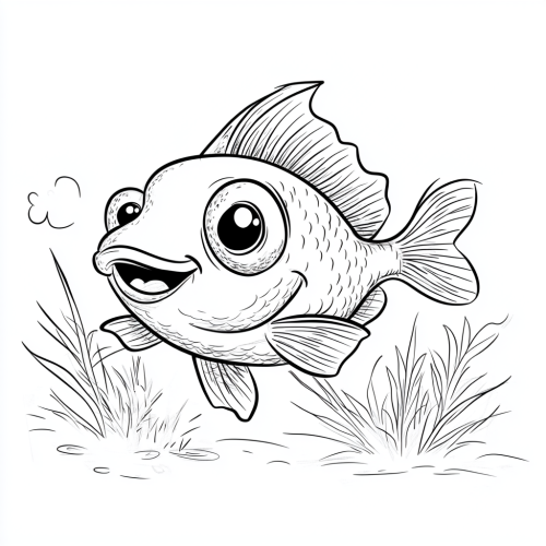 A cute whale in its natural habitat with oversized head, round body, and large eyes,outlined in thick black ink on a white background, no shading, bold clear lines, children's coloring book page illustration . Disney style