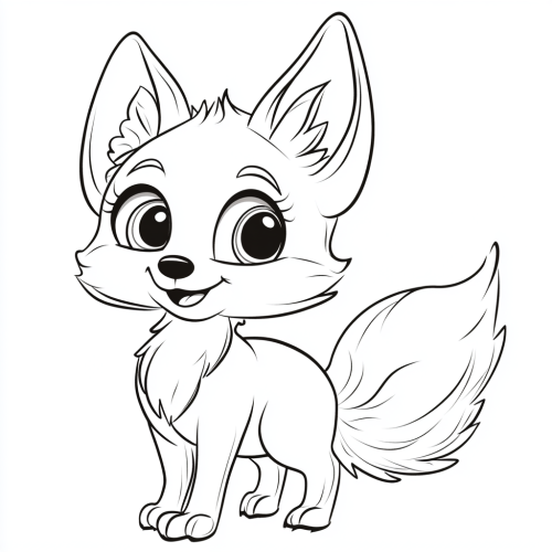 A cute lion in its natural habitat with oversized head, round body, and large eyes,outlined in thick black ink on a white background, no shading, bold clear lines, children's coloring book page illustration