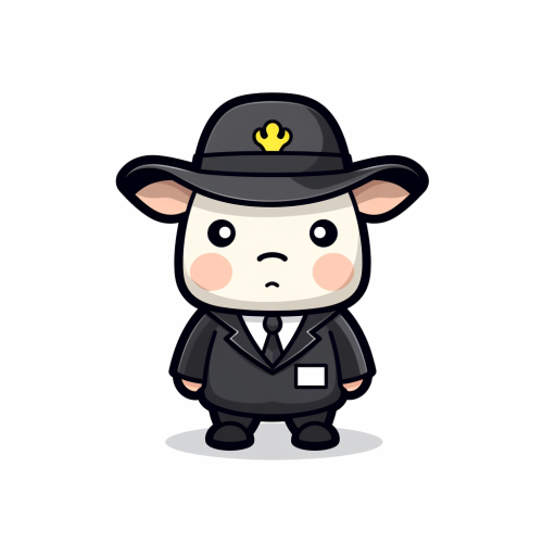 Cartoon cow, kawai, detective costume, flat minimalistic logo, modern, simple, vector, 2d, Centered, black outline