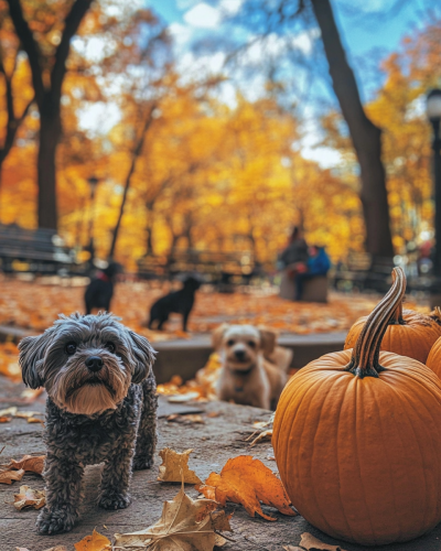 amateur photo from Facebook. taken with an iphone 15 pro Pumpkin Lush recipe against a real-life public park and cute dogs playing and children background--style raw --ar 4:5