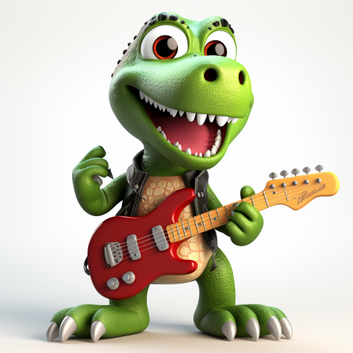 a music album cover with the artist in the background playing guitar. The artist is facing away from the camera, sitting on a rock, sunset and sea in the background. The artist is 50 years old and is bold. The album cover is animated like a cartoon. high resolution. v.6
