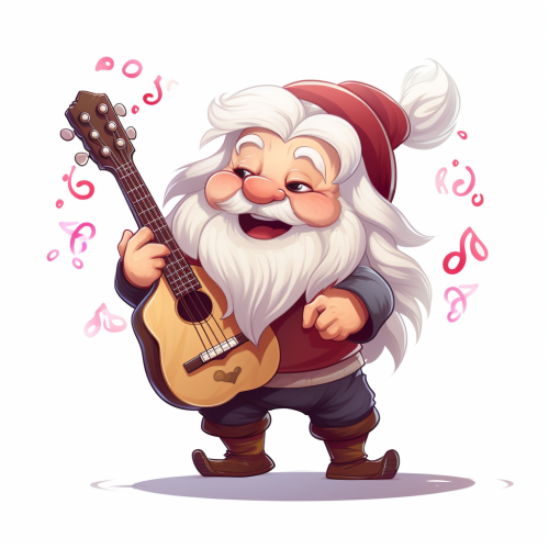 cute dwarf bard singing and playing a guitar, valentine, kawaii, cartoon, white background