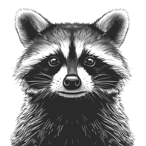 a cute racoon mascot simple draw in monochrome outlined over a completely white background, --v 6.0