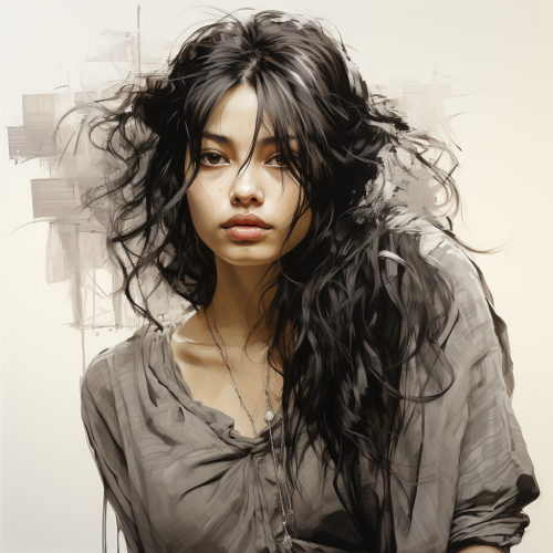 sketch of a 19 year old beautiful mexican woman the shinkawa style--ar 9:16 --stylize 750 --v 5.2