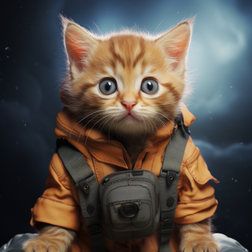 photorealstic image a cute kitten dressed in overall, with a DLSR camera hanging from its neck.