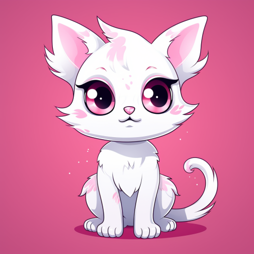 A cute white pet cat model, very small, wearing pink overalls, anthropomorphic, standing on two feet, on the street, with many lanterns, as if enjoying city life. --ar 3:4 --niji 6 --style raw