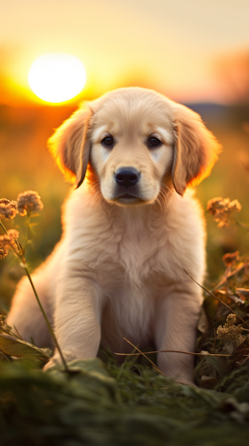 happy cute golden retriever puppy, green grass, --ar 9:16