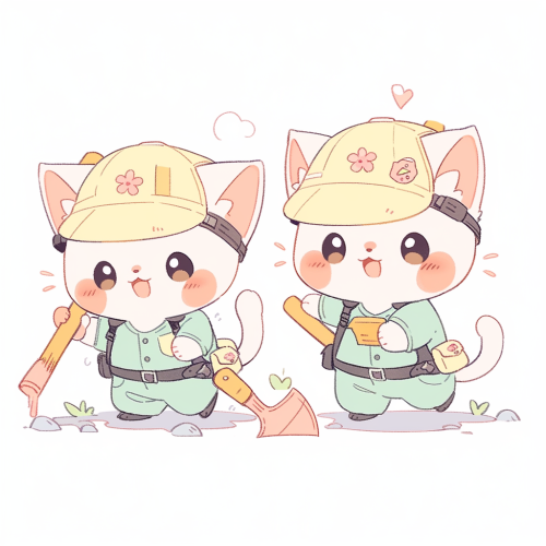 A kitten with a hard hat and a shovelA kitten with a hard hat and a shovel --niji 5