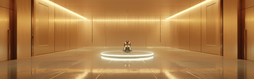a big empty beige room, with a metallic robot in the middle in Tesla robot style. Very realistic picture. 12mm — v.6 --ar 19:6