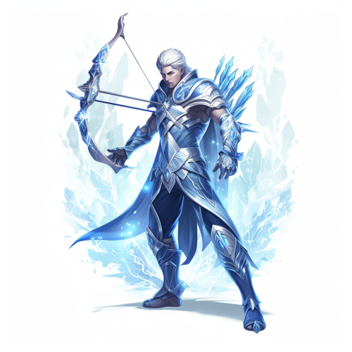 full body shot, magical archer from an rpg game, arrow made of blue light, early 20’s male, similar to ‘magic archer’ from ‘clash Royale’, white background