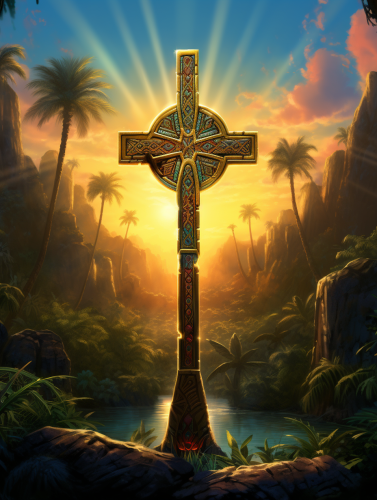 Egyptian Lion God standing vertically holding an Ankh in his hand --ar 2:3 --s 750