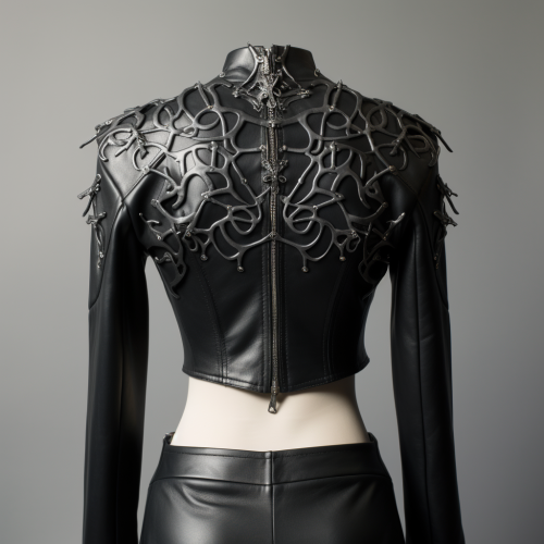 Stylish cyberpunk woman in red leather jacket