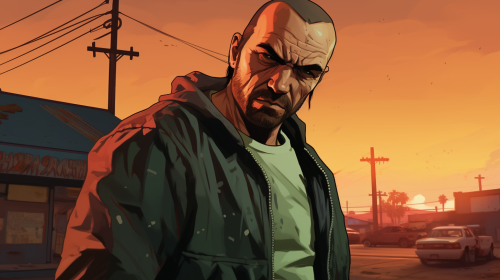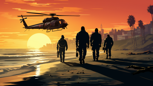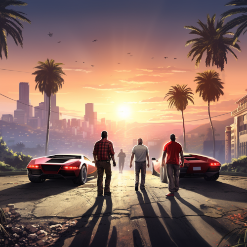 They're Here, artwork by rockstar games, artwork of gta 5, cel shading, cel art, --ar 16:9
