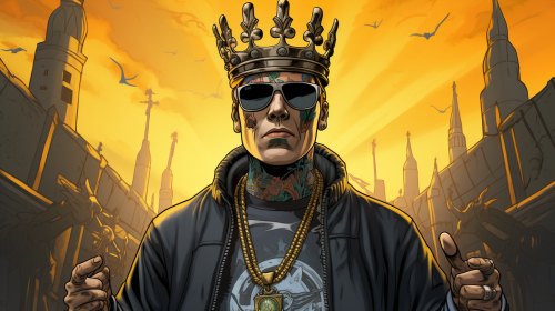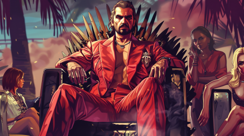 Hail to the King - Avenged Sevenfold, artwork by rockstar games, artwork of gta 5, cel shading, cel art, --ar 16:9
